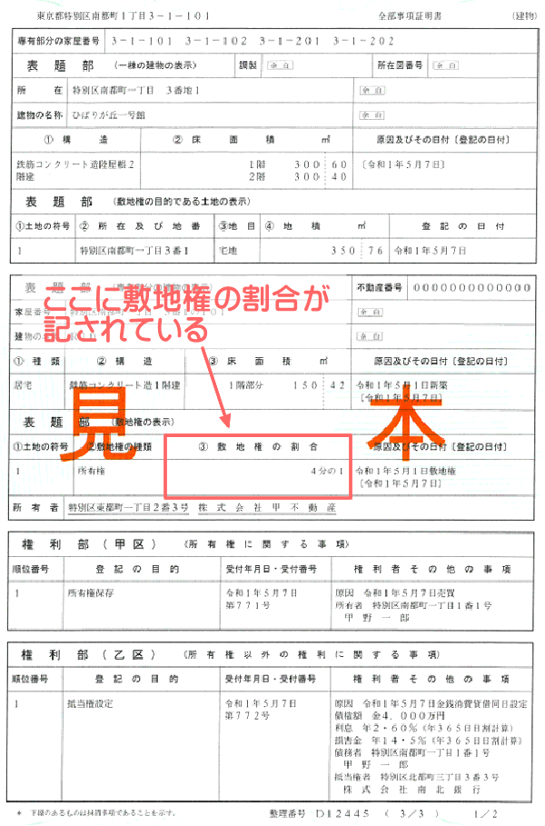 「3456789101分の34567891」などと複雑な分数が記されていれば、それが敷地権の割合です。